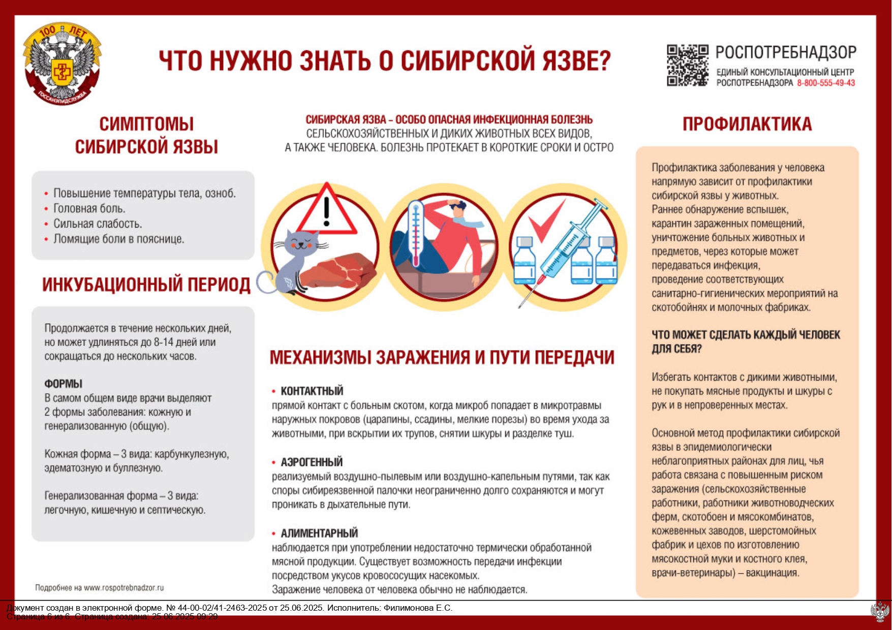 Соблюдение правил профилактики сибирской язвы